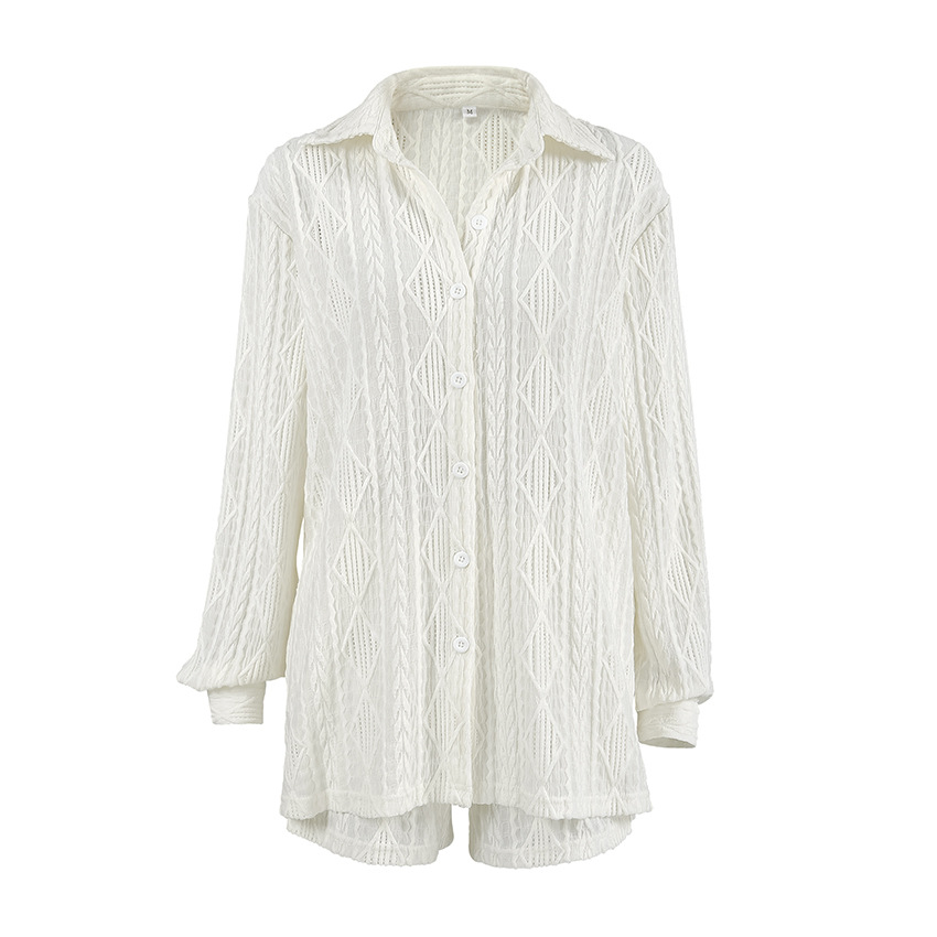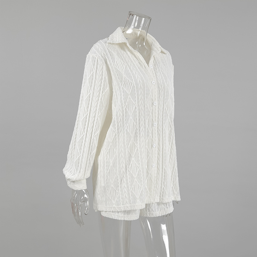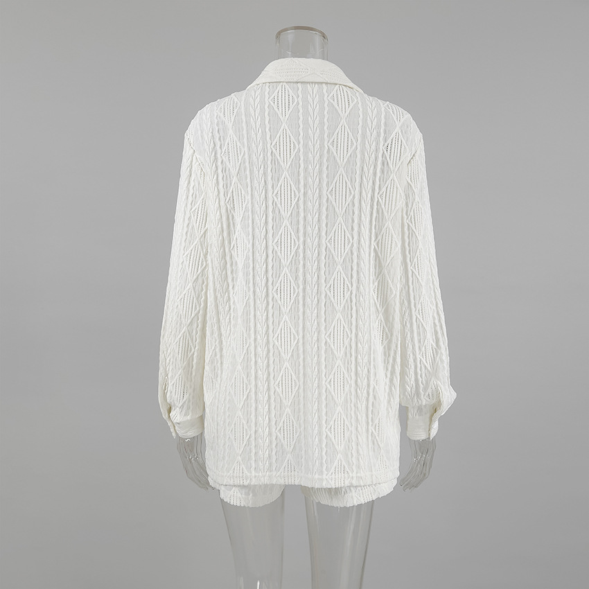 Knitted Jacquard Cardigan And Long-sleeved Shorts Pajama Set